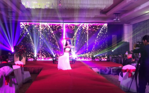 一段古典音樂,一身白裙手撐一把油紙傘纖纖妙人緩緩走上舞臺,開始一段唯美的鋼管舞,現(xiàn)代與古典完美結(jié)合,剛?cè)岵嗟靡嬲?。舞臺美的像一幅山水畫卷。